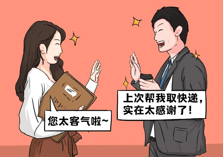 有次午休时候,一个同事的大件快递到了,当时他人不在,很着急又略带歉意地问我能不能帮忙取一下。帮收了之后,周一这位同事拿了5个苹果给我,和我说一天一个刚刚好,笑死。有时快递是被放在快递柜里超时了的,同事会把取件码发来,顺便把钱转给我,哪怕只超了1块钱。还有一次境外快递寄过来,特殊时期需拆开包裹当场消杀,整体流程十分繁琐。同事得知后非要当面感谢我,我真心觉得举手之劳而已,大家太客气了。