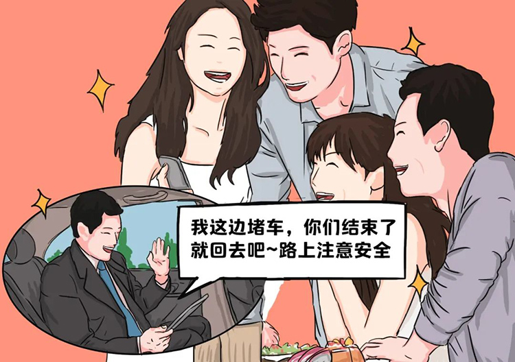 同事围坐在一桌,菜陆续开始上,正在尴尬还要等多久,最年长的员工就收到了消息,说领导让大家先吃,自己预计还得半个小时。计划赶不上变化,周五的晚高峰,领导这边的车子在路上堵得一动不动。真是恨不得弃车狂奔,但看着距离还有10公里,眼瞅着是来不及了,领导果断私聊老员工,交代结账和发票的事情。又生怕大家傻愣愣干等着,于是发群消息:大家不好意思,这次聚餐我赶不上了,吃完后你们自行安排回家,路上注意安全。