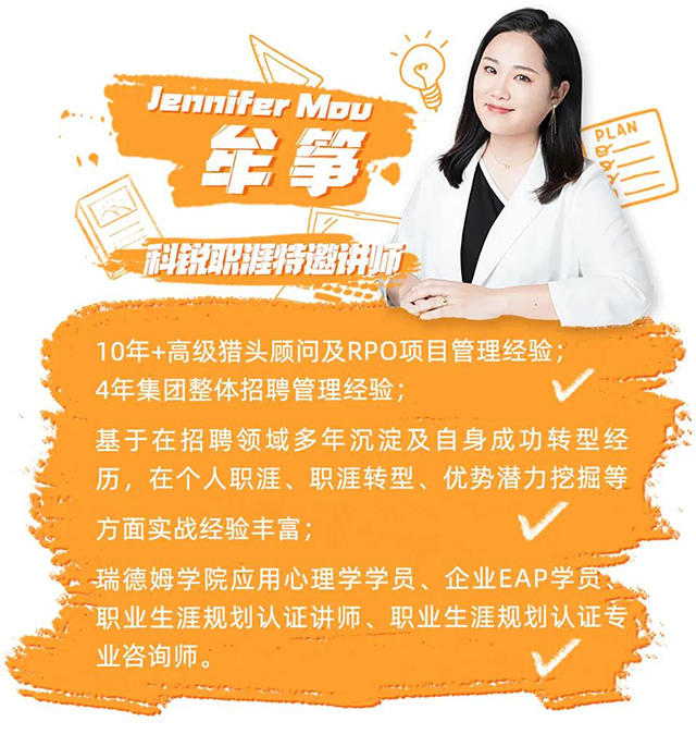 “职涯优势管理专家”致力于帮助大学生、海归,以及处于20+定位期、30+转型期、40+晋阶期的职场人士,通过天性优势测评、面试辅导、职涯教练等多个维度,全方位助力职场人士最大化发挥自身核心优势,探寻职业发展最佳路径与晋阶突破之道。