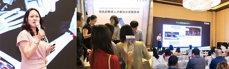 猎头公司在现场设置展台,并进行品牌展示。客户管理部、RPO(招聘流程外包)业务、Staffing(灵活用工)业务、睿聘业务、薪酬外包业务同事出席活动,与参会嘉宾互动交流。