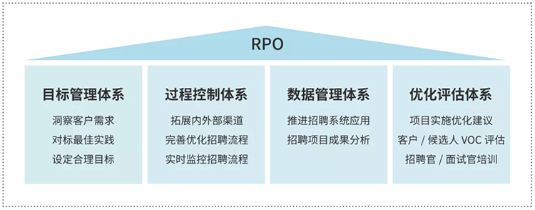 招聘流程外包属于业务流程外包的一种。具体而言,是由RPO(Recruitment Process Outsourcing)服务商作为总包商(Master Contractor),为企业提供招聘策略咨询、招聘体系搭建、招聘流程管理、人才库管理、招聘渠道管理、招聘技能培训、雇主品牌提升、招聘新技术应用等,同时确保招聘结果高效达成的整体解决方案。