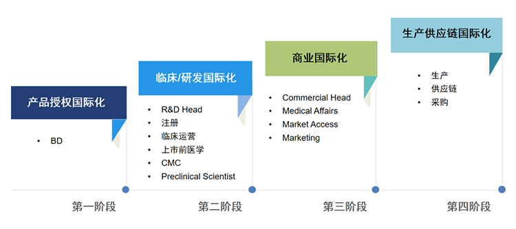 当企业迈入临床和注册阶段,R&D head,以及了解当地市场的注册总、临床运营总、上市前医学总、CMC等方面的人才被迫切需要。