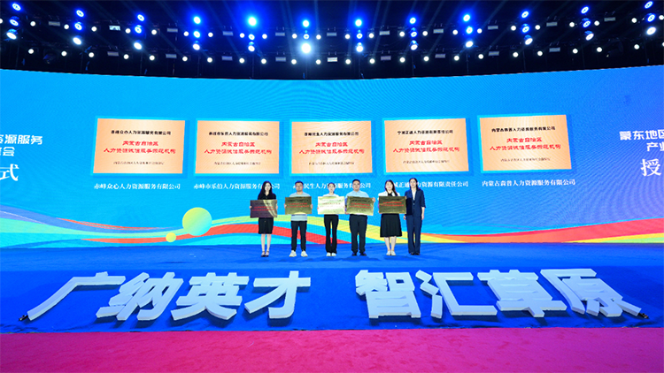 峰会现场首先对赤峰市成功入选“内蒙古自治区人力资源诚信服务示范机构”的5家经营性人力资源服务机构进行授牌,它们分别为:赤峰众心人力资源服务有限公司、赤峰市乐伯人力资源服务有限公司、赤峰民生人力资源服务有限公司、宁城正通人力资源有限责任公司、内蒙古森普人力资源服务有限公司。