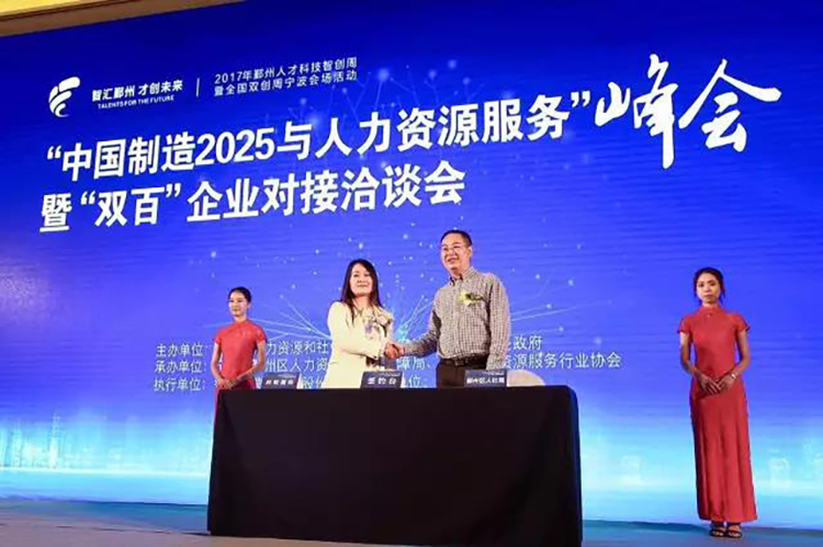 还出席了“中国制造2025与人力资源服务”峰会暨“双百”企业对接洽谈会。本次峰会由浙江省宁波市鄞州区举办,旨在促进人力资源服务业和先进制造业深度融合,着力解决智能制造领域人才供给问题,非凡国际
