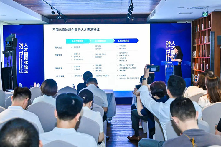 陈崧在主题分享中指出:近两年企业出海热度不减,开始进入“全民出海”新阶段,出海呈现出从走出去到走进去、从大公司到中小企业、从传统行业到新赛道的趋势。而人力资源服务机构作为全球人才要素的重要链接者,在助力企业参与全球产业链、价值链的过程中扮演着关键角色。