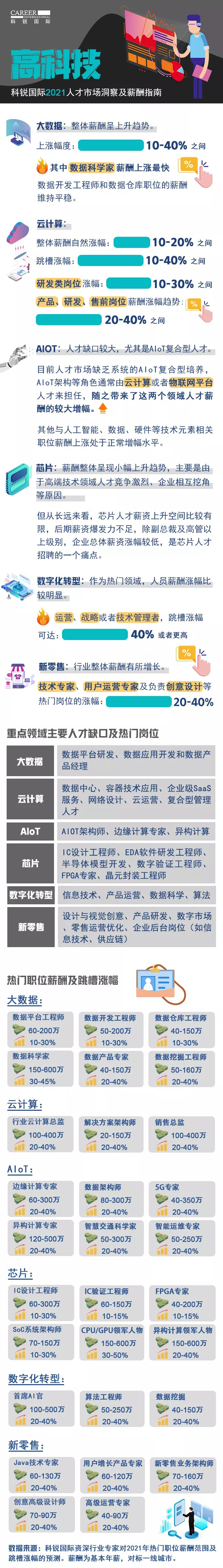 去年,中央提出加快5G网络、数据中心等新型基础设施建设进度,通过“新基建”来促进经济结构调整、实现经济动能转换和促进经济高质量发展。在此背景下,多地积极规划数字经济蓝图,5G与云计算、大数据、人工智能、工业互联网发展浪潮奔涌,企业竞相展开布局,由此带来新一代信息技术上下游硬核科技人才急需紧缺,成为各大企业争夺的目标。下文是猎头公司非凡国际 发布的薪酬报告对高科技行业的人才招聘需求和薪酬趋势的分析预测,供企业和猎头招聘参考。
