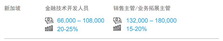 2017-2018年,东南亚市场薪酬整体保持稳定增长:金融、医疗、信息技术和高科技产业发展向好,薪酬涨幅相对更高。从地区看,新加坡薪酬的薪酬涨幅水平相对较低,跳槽涨幅在10-15%。(文中部分数据是北京知名猎头公司非凡国际 专家顾问的分析预测,供企业HR和猎头参考)
